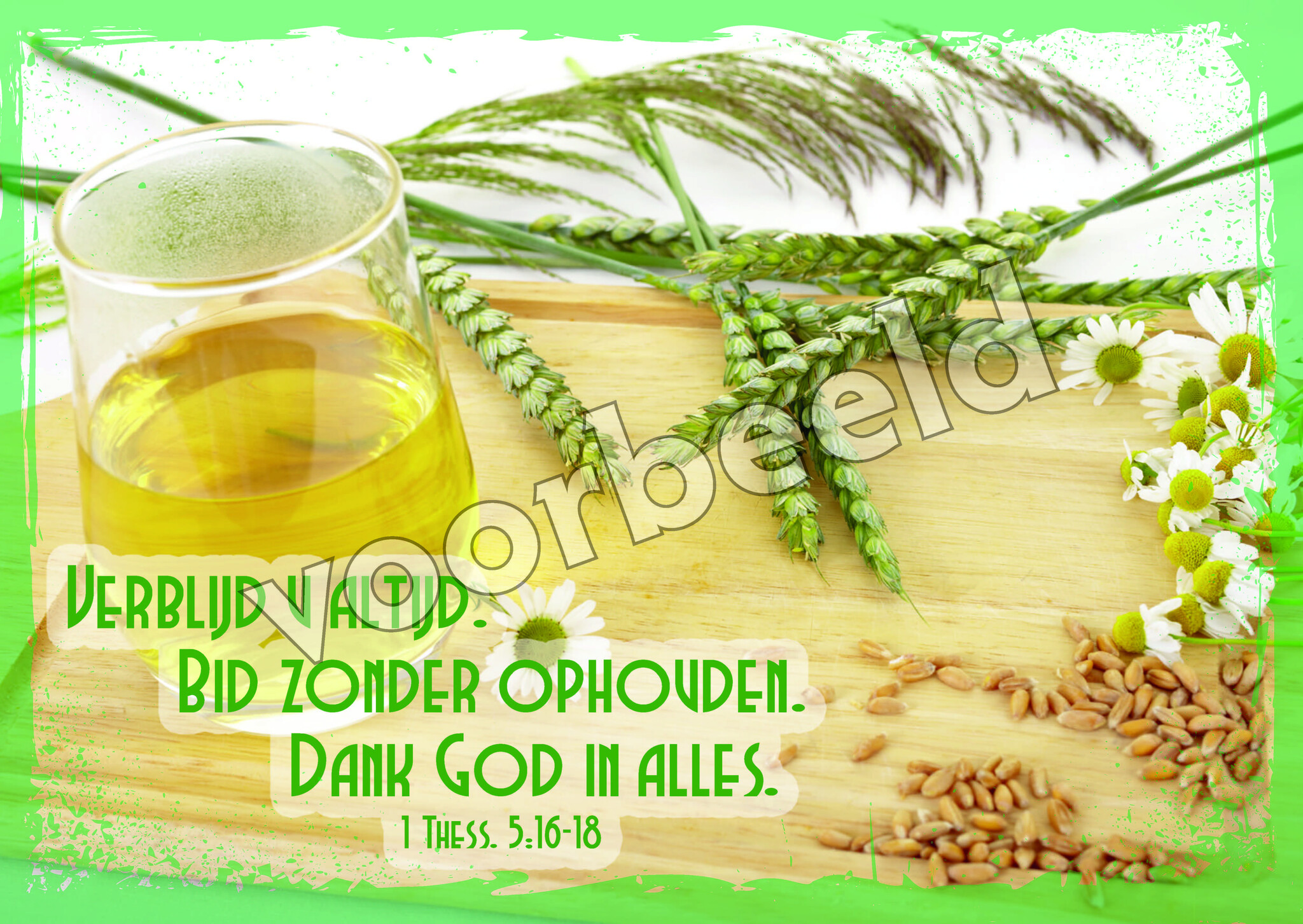 Verblijd u altijd. Bid zonder ophouden. Dank God in alles. 1 Thess. 5:16-18