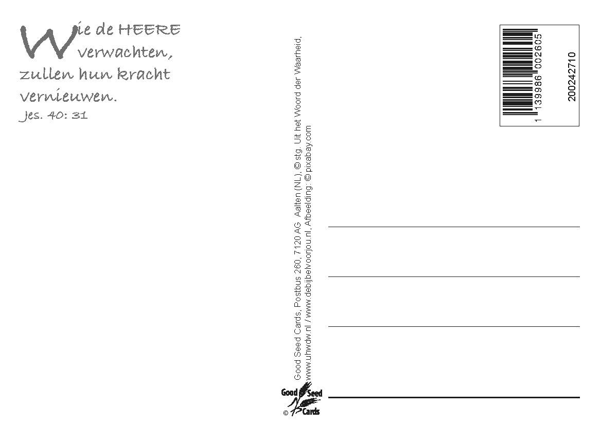 Ansichtkaart, verpakt per set van 10 stuks van dezelfde kaart met de Bijbeltekst: