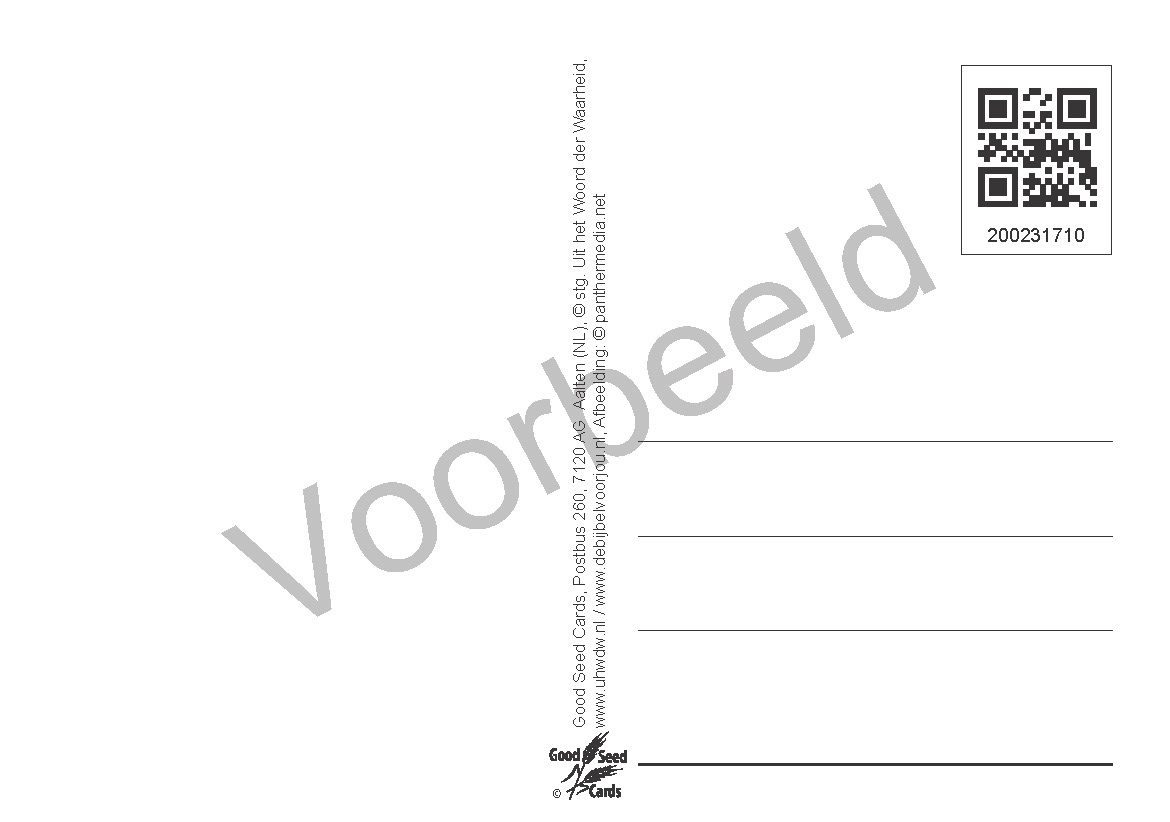 Ansichtkaart, verpakt per set van 10 stuks van dezelfde kaart met de Bijbeltekst: