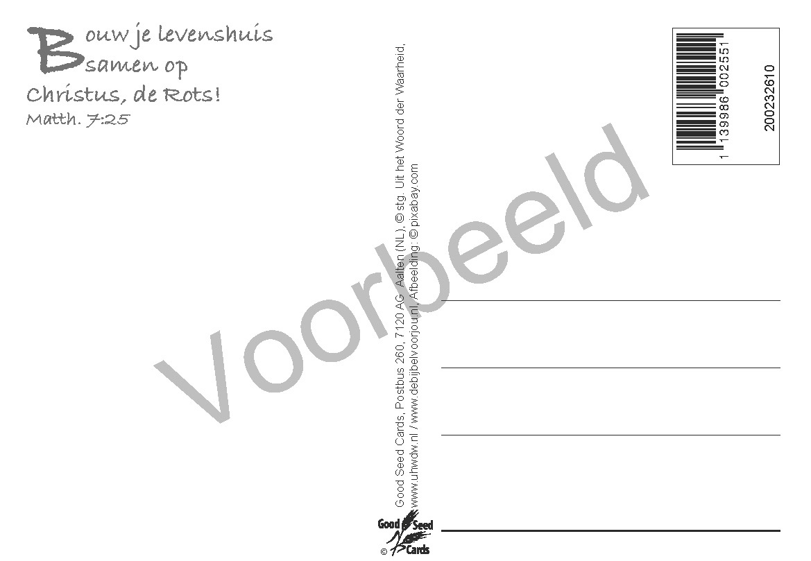 Ansichtkaart, verpakt per set van 10 stuks van dezelfde kaart met de Bijbeltekst:
