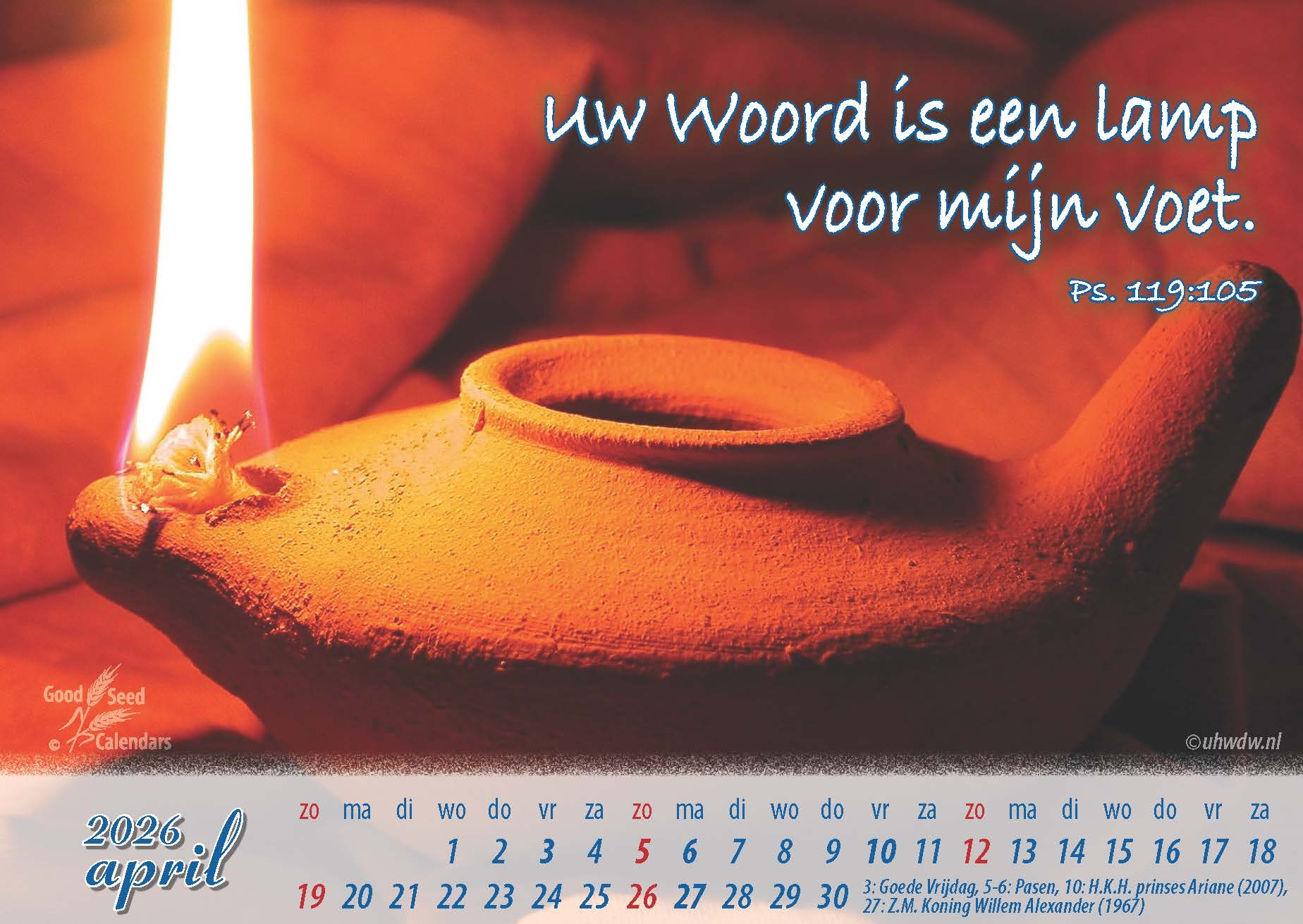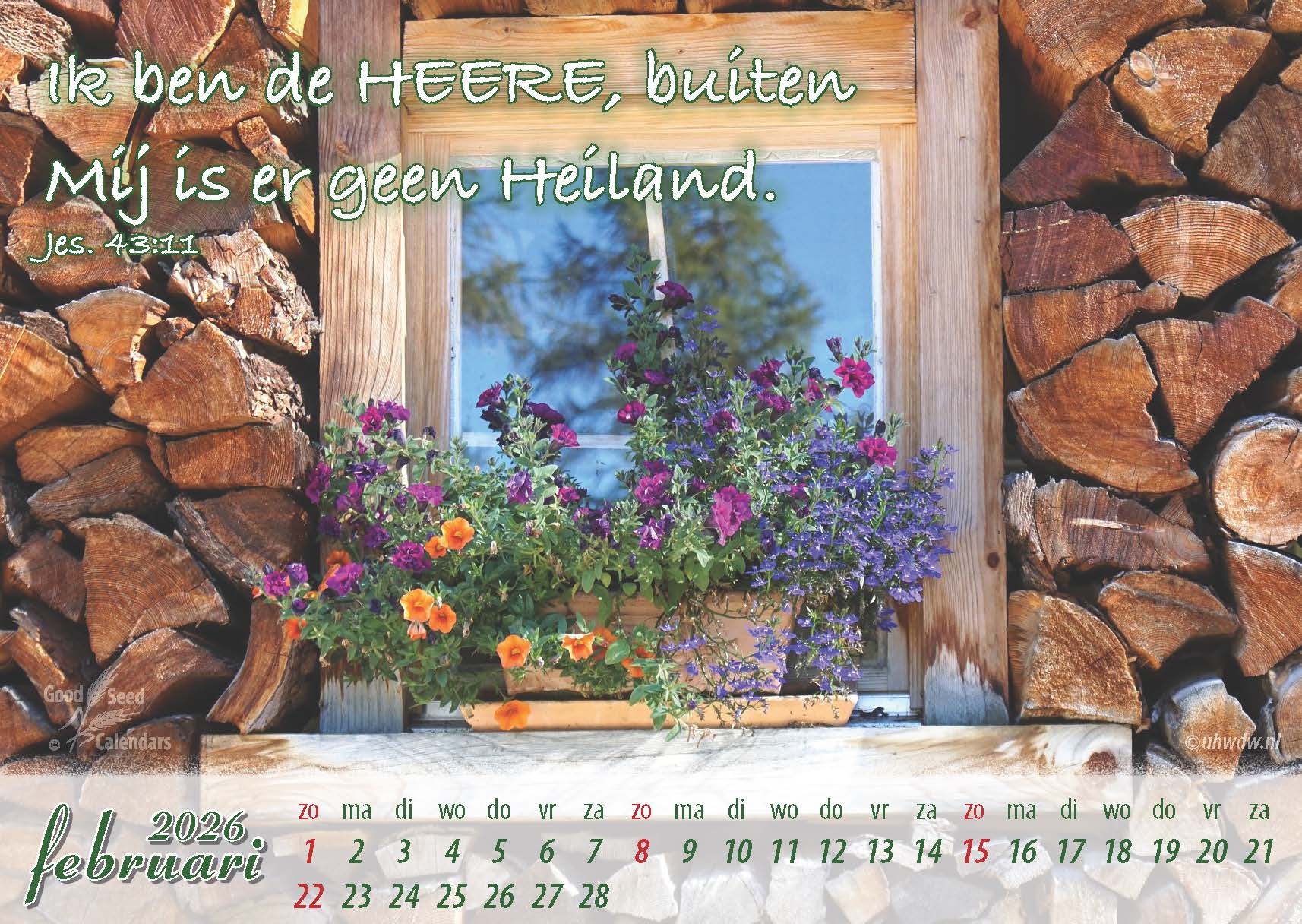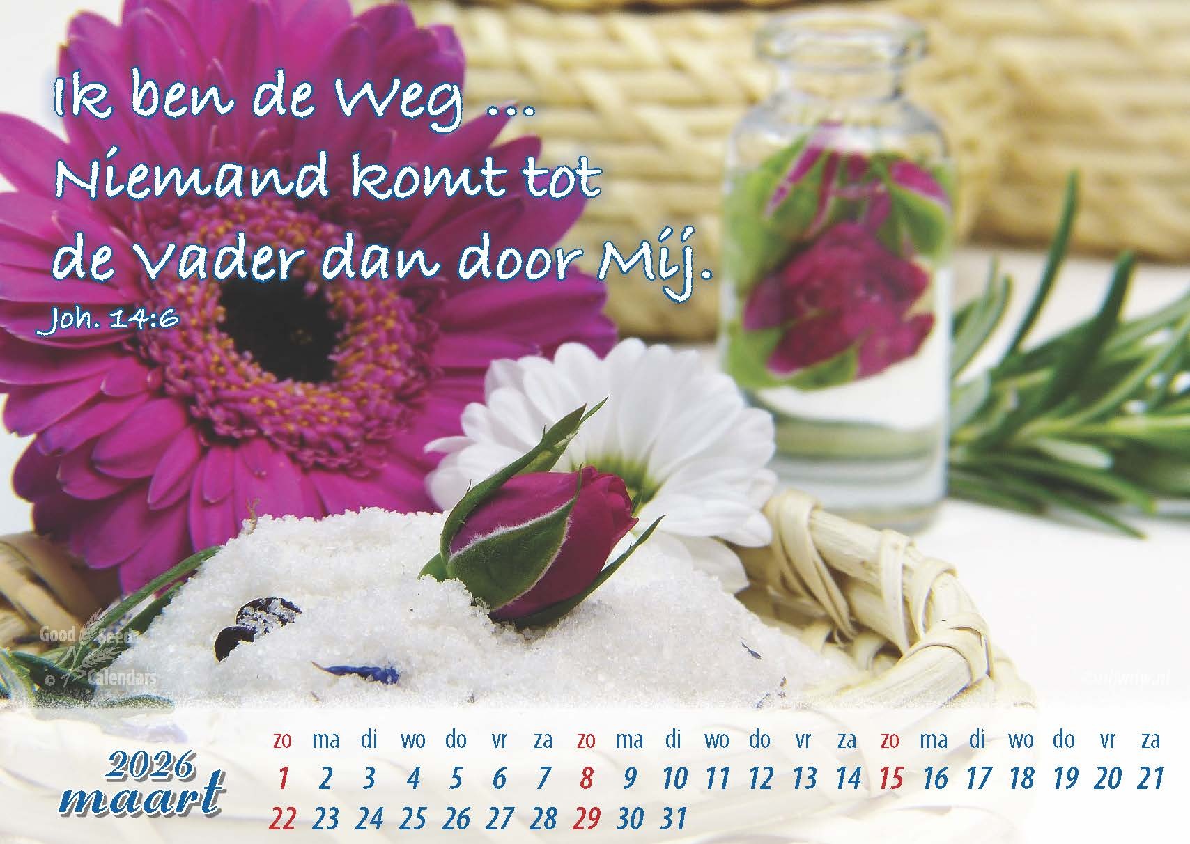 Een bureaukalender met elke maand een fraaie foto, voorzien van een Bijbeltekst. Ook geschikt voor zieken, senioren en pastoraal werk.
