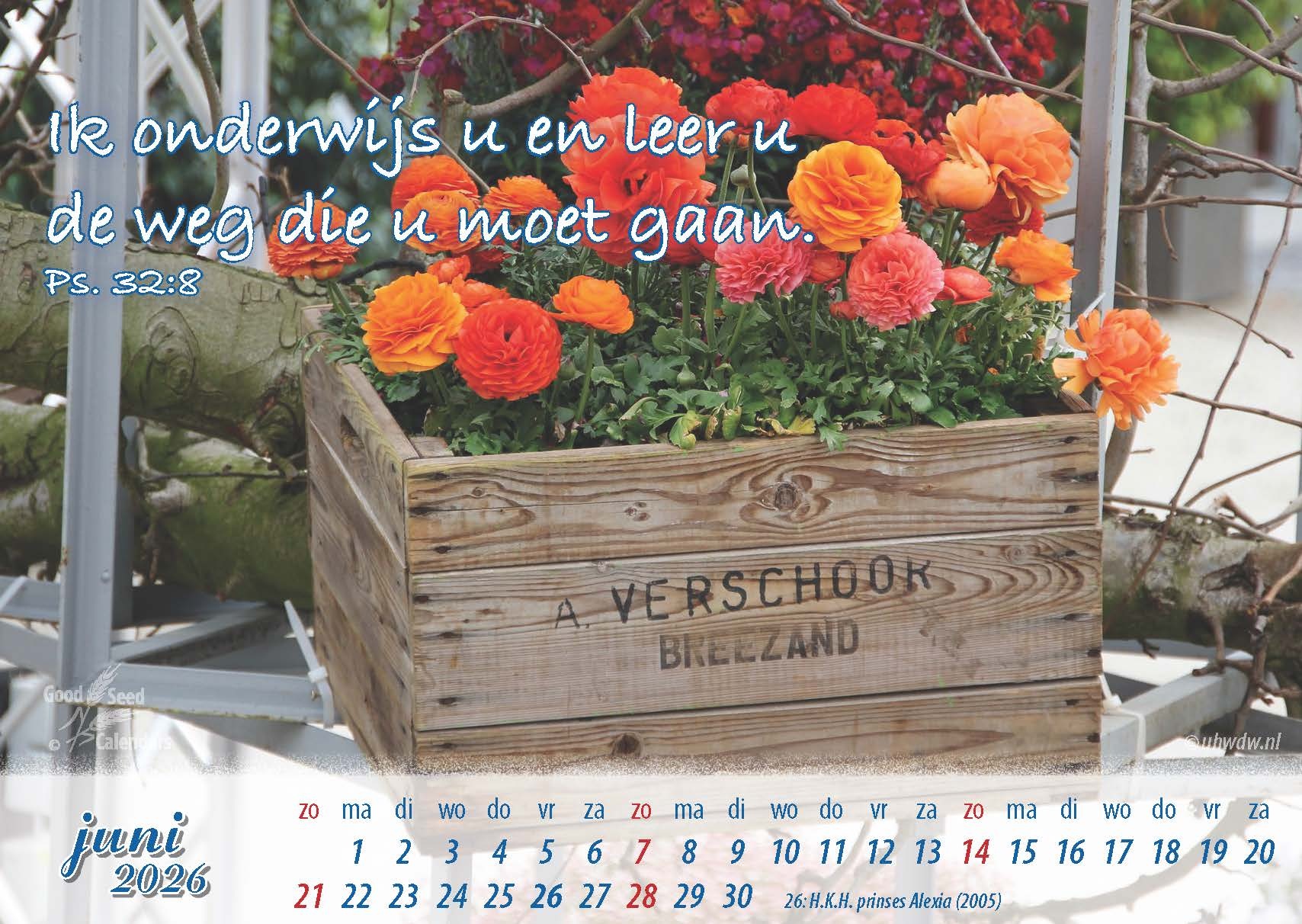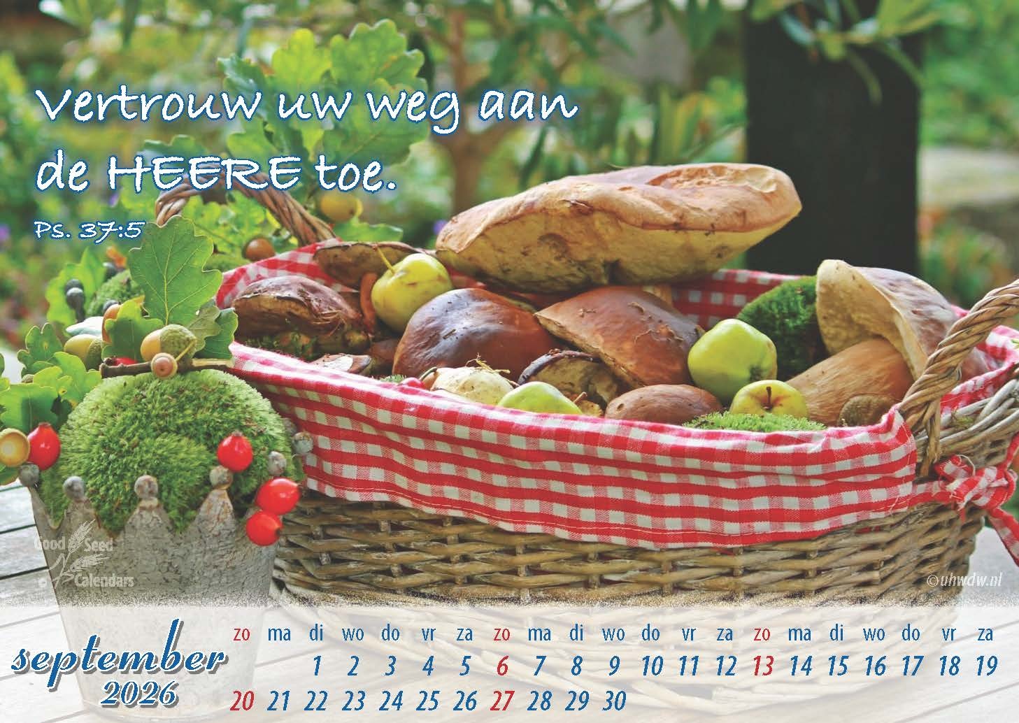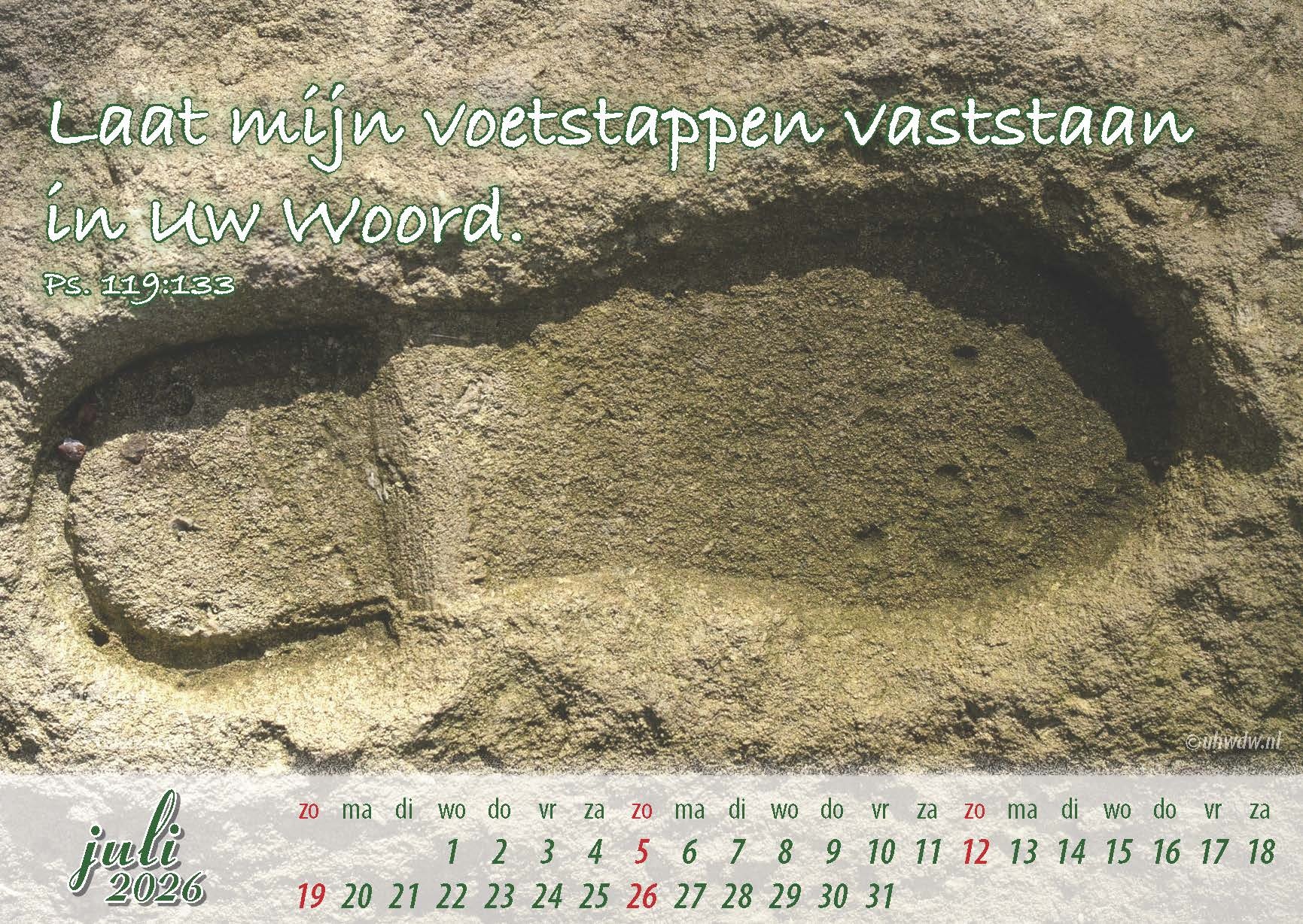Een bureaukalender met elke maand een fraaie foto, voorzien van een Bijbeltekst. Ook geschikt voor zieken, senioren en pastoraal werk.