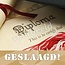 Notitieboekje (gel met bijen) V.v. Een transparante sticker met opdruk: 'Jezus Christus gaf Zijn leven en Hij stierf voor mij. Ik was een verloren zondaar, maar 'k vond vrede en ben blij en van harte dankbaar, want wie redt als Hij? Elk