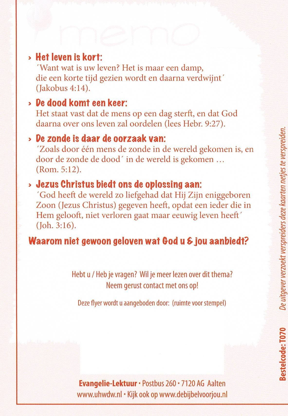 Traktaat: Memo Niet vergeten! ( 1 stk = set van 10 dezelfde traktaten)
