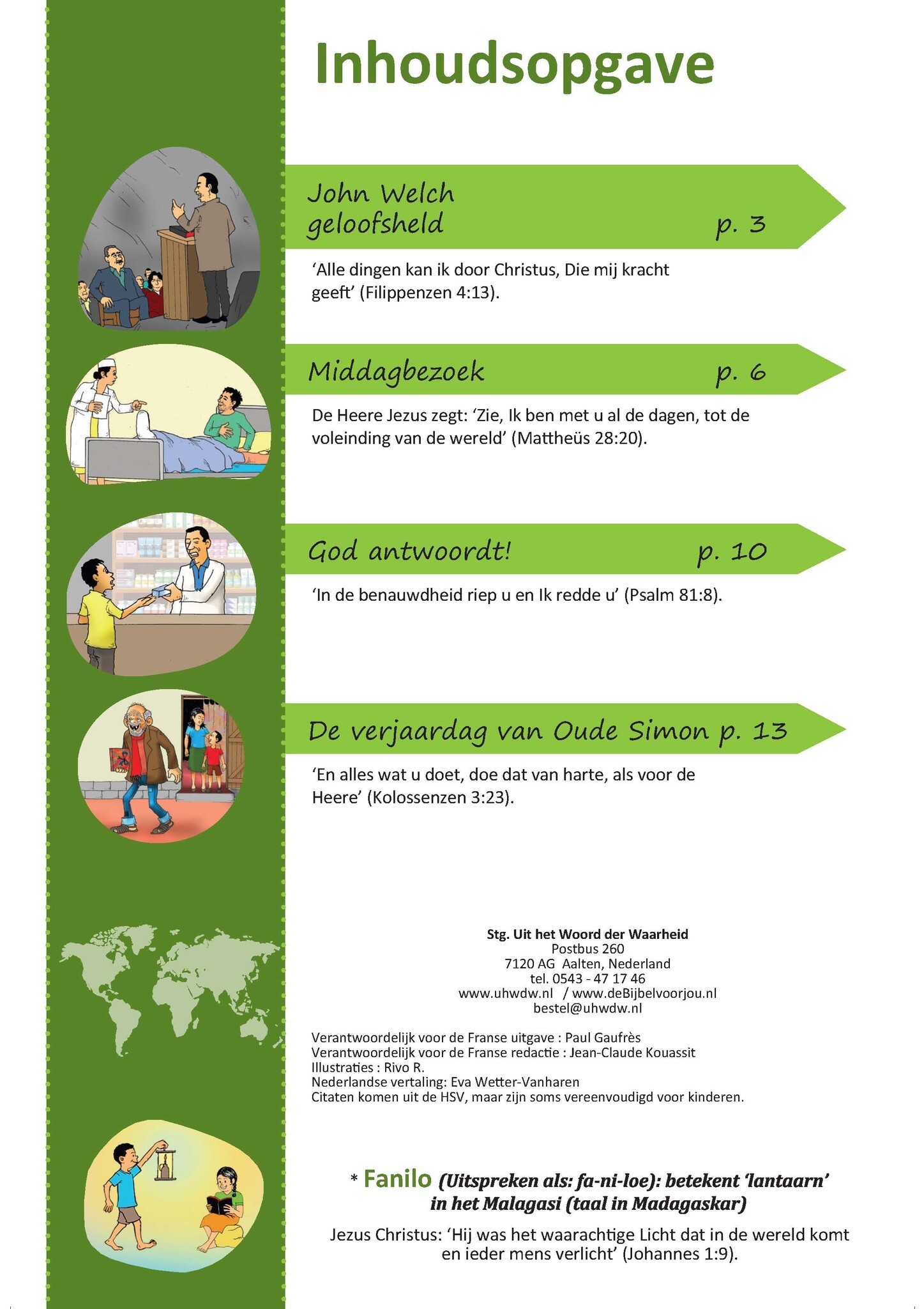 Deze fraai vormgegeven brochure is uitermate geschikt om in het evangelie door te geven aan kinderen, ook in een multiculturele omgeving. De serie ‘Fanilo’ is ontworpen in Madagaskar en geeft in verhalende vorm het goede nieuws van redding door Jezus Christus op een begrijpelijke manier door aan kinderen. Met kleurplaten en Bijbelteksten om evt. uit het hoofd te leren.