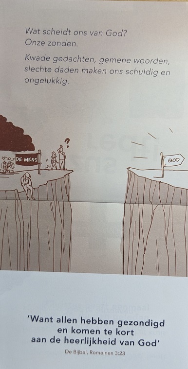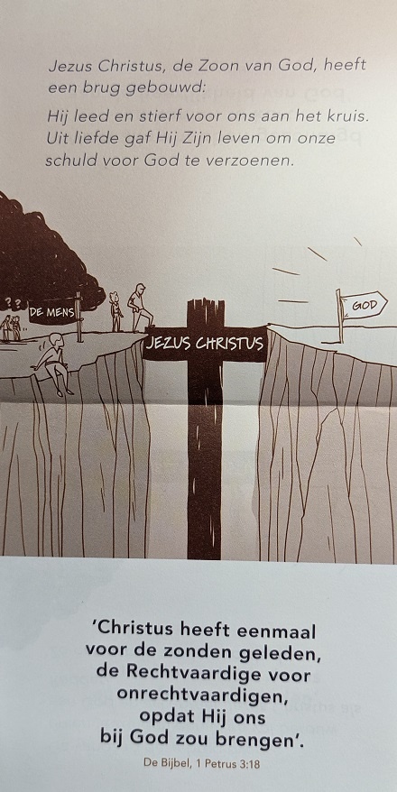 Het vertelt ons op 3 pagina's, hoe de mens, die door zijn/ haar zonden voor een onoverbrugbare kloof staat en zelf niet in staat is om bij God te komen tóch tot God kan komen!