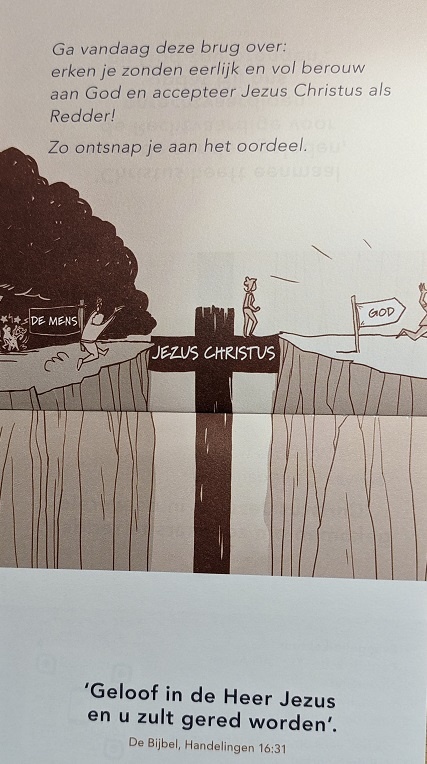 Ga vandaag deze brug over: erken je zonden eerlijk en vol berouw een God en accepteer Jezus Christus als Redder! Zo ontsnap je aan het oordeel.
