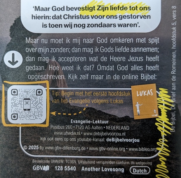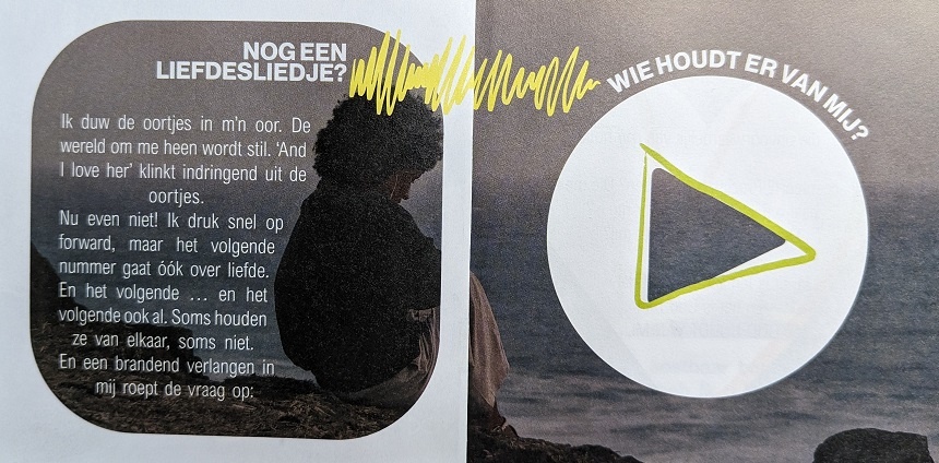 Nog een liefdesliedje? Een vierkante flyer van 10,5 x 10,5 cm van 6 pagina's. Uitermate geschikt om aan jonge mensen uit te delen! Een boodschap vol liefde: 'Sinds u kostbaar bent in Mijn ogen ... heb Ík u liefgehad'.