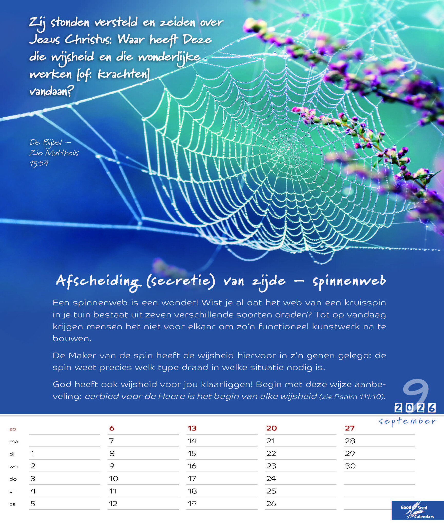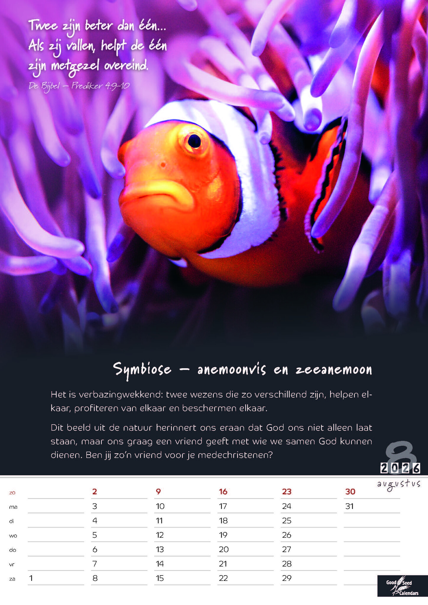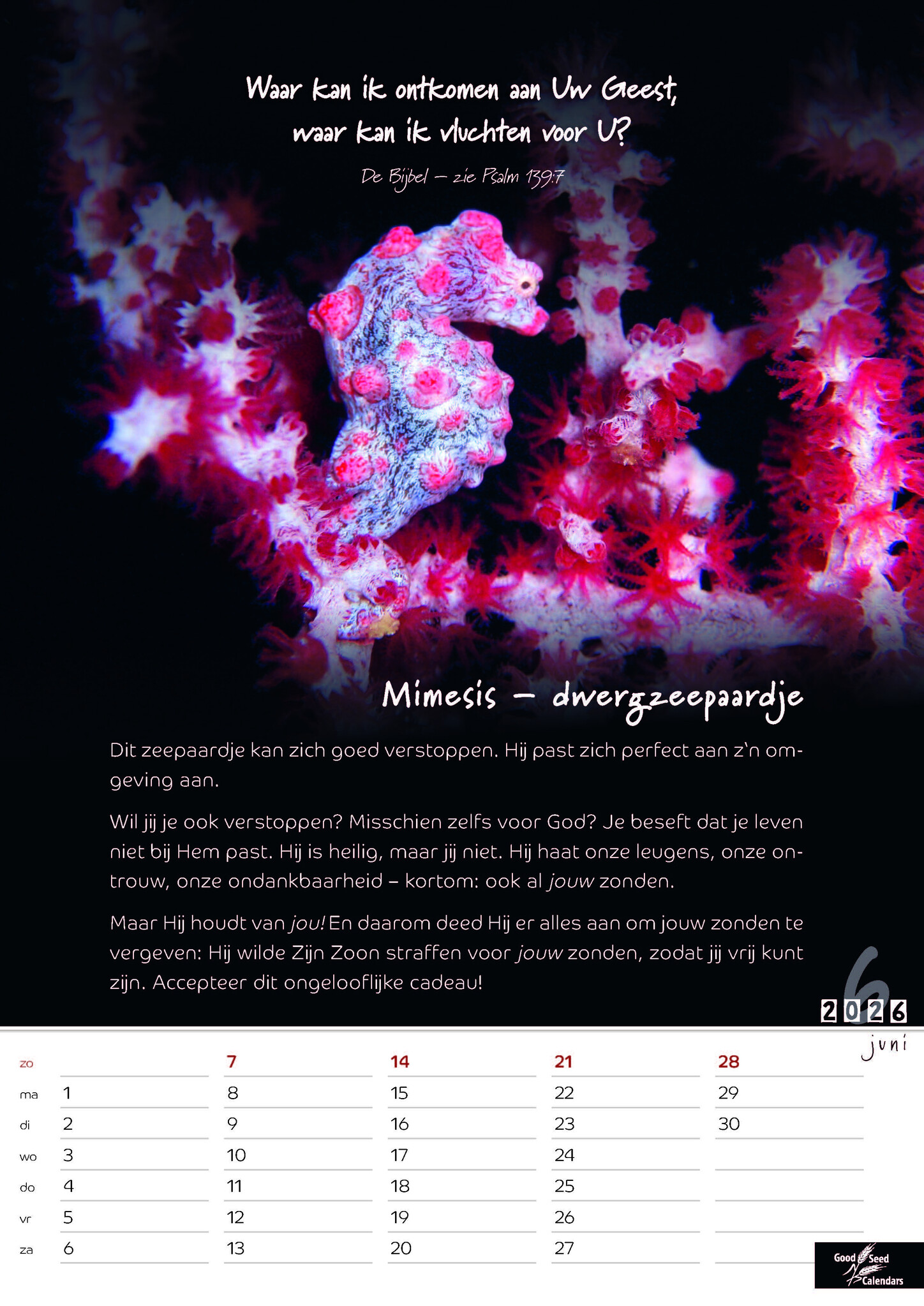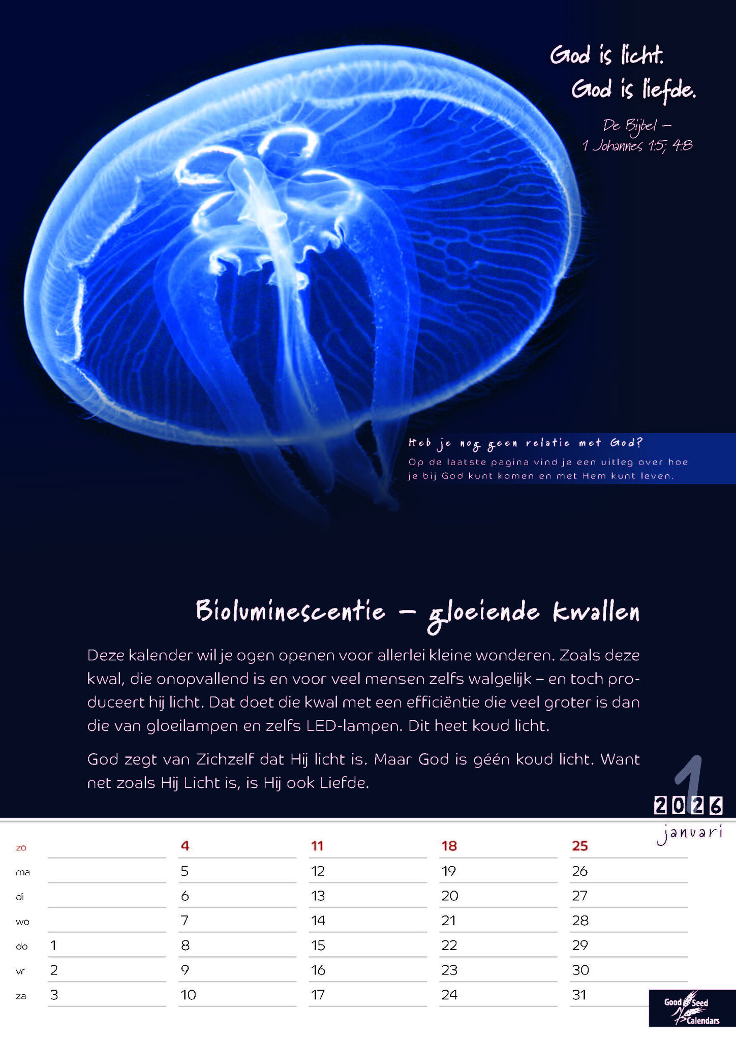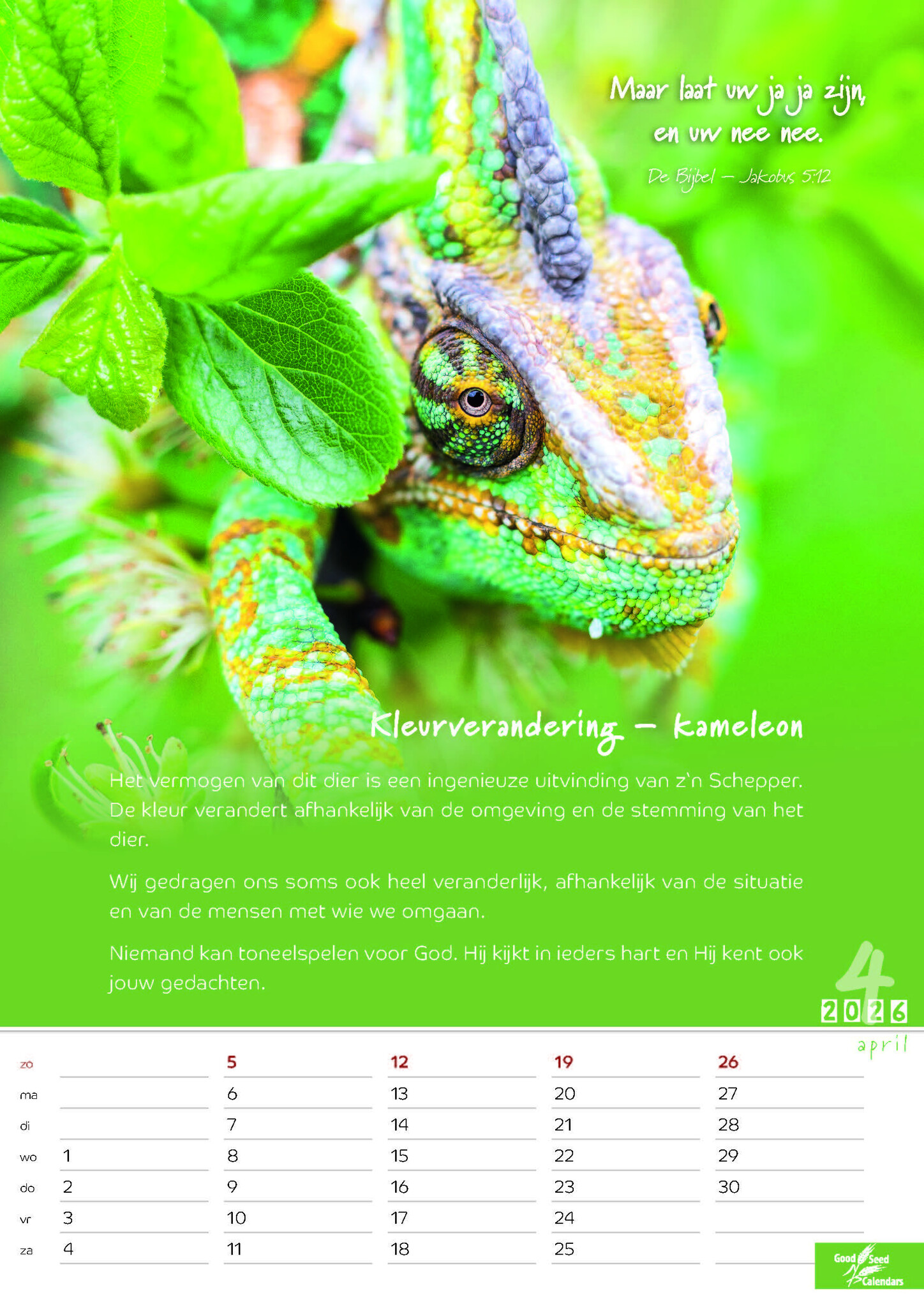 Een prachtige posterkalender, dit jaar uitgevoerd met hoge kwaliteit foto's. Elke maand voorzien van een Bijbeltekst en een korte meditatie.