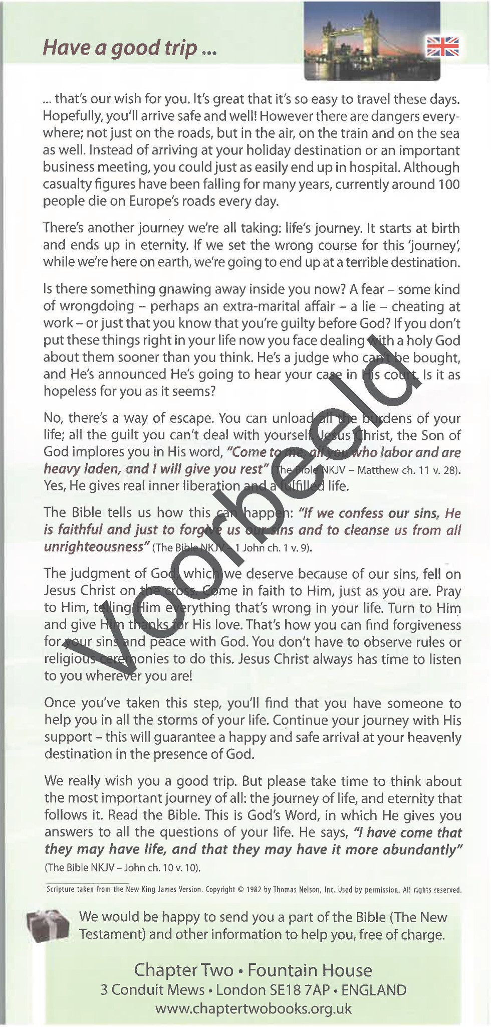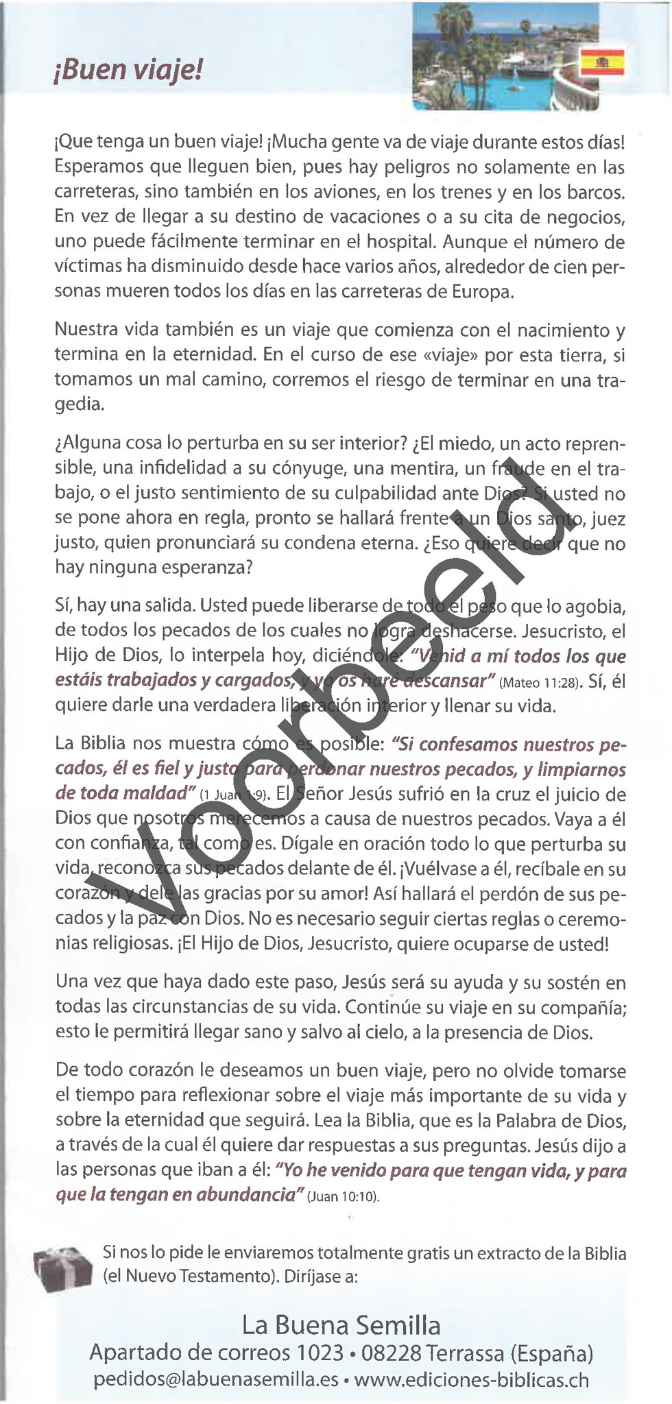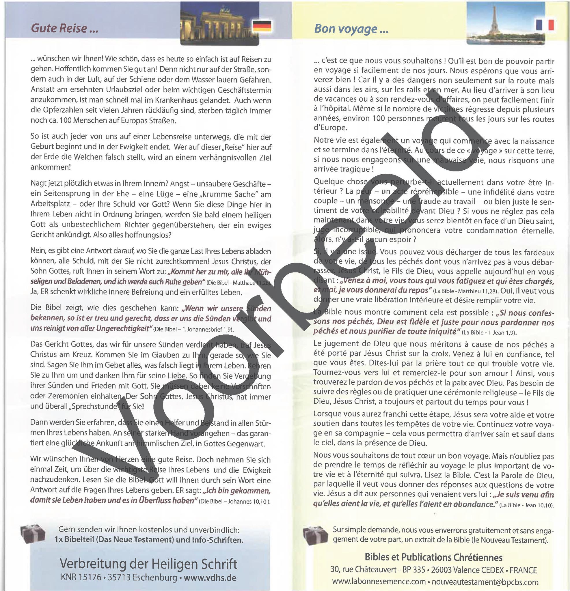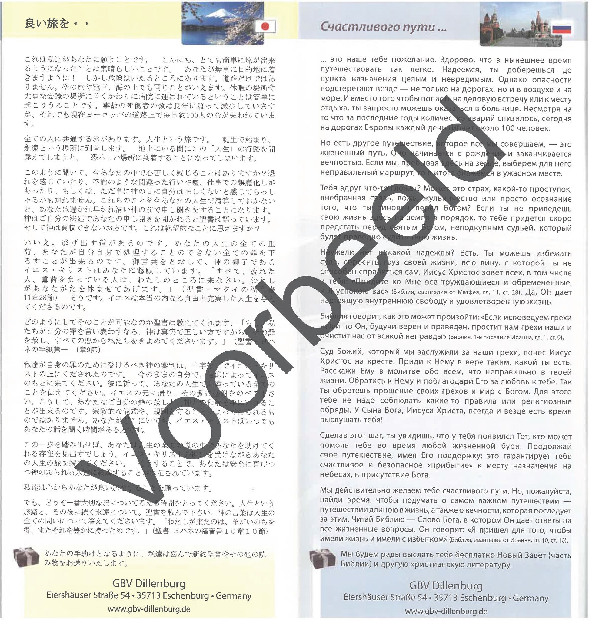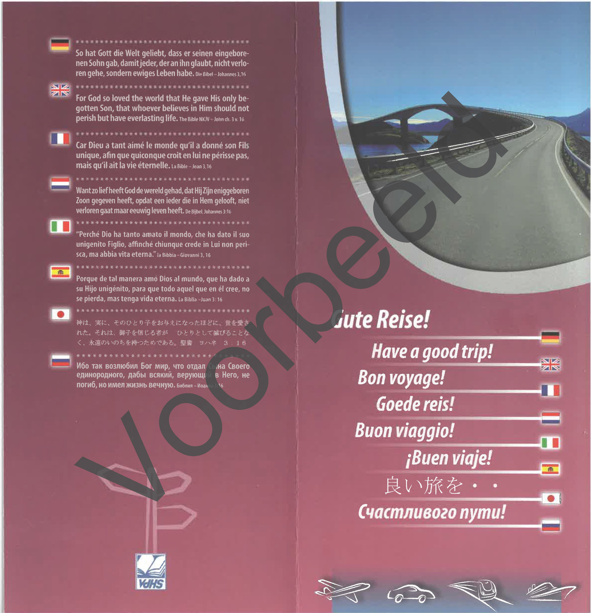 Traktaat: Goede reis! ( 8-talig ) ( 1stuk = set van 10 dezelfde traktaten)