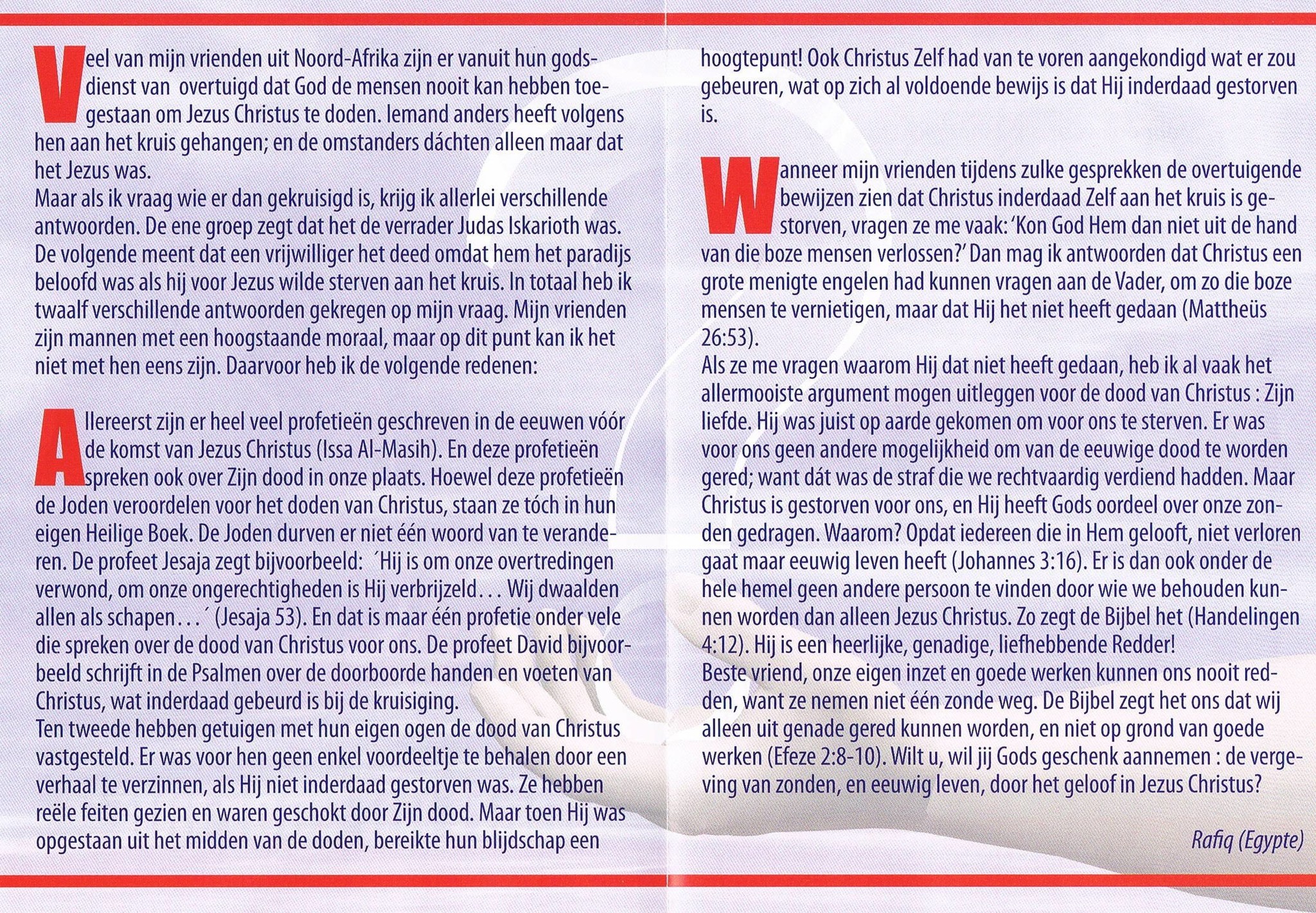 Dit traktaat is geschreven door Anise M. Behnam (pseudoniem: Rafiq), een bekende Bijbelleraar die jarenlang Arabische radio-uitzendingen verzorgde. En daardoor bijzonder geschikt voor allochtone én autochtone medelanders met weinig kennis over het Christelijk geloof.