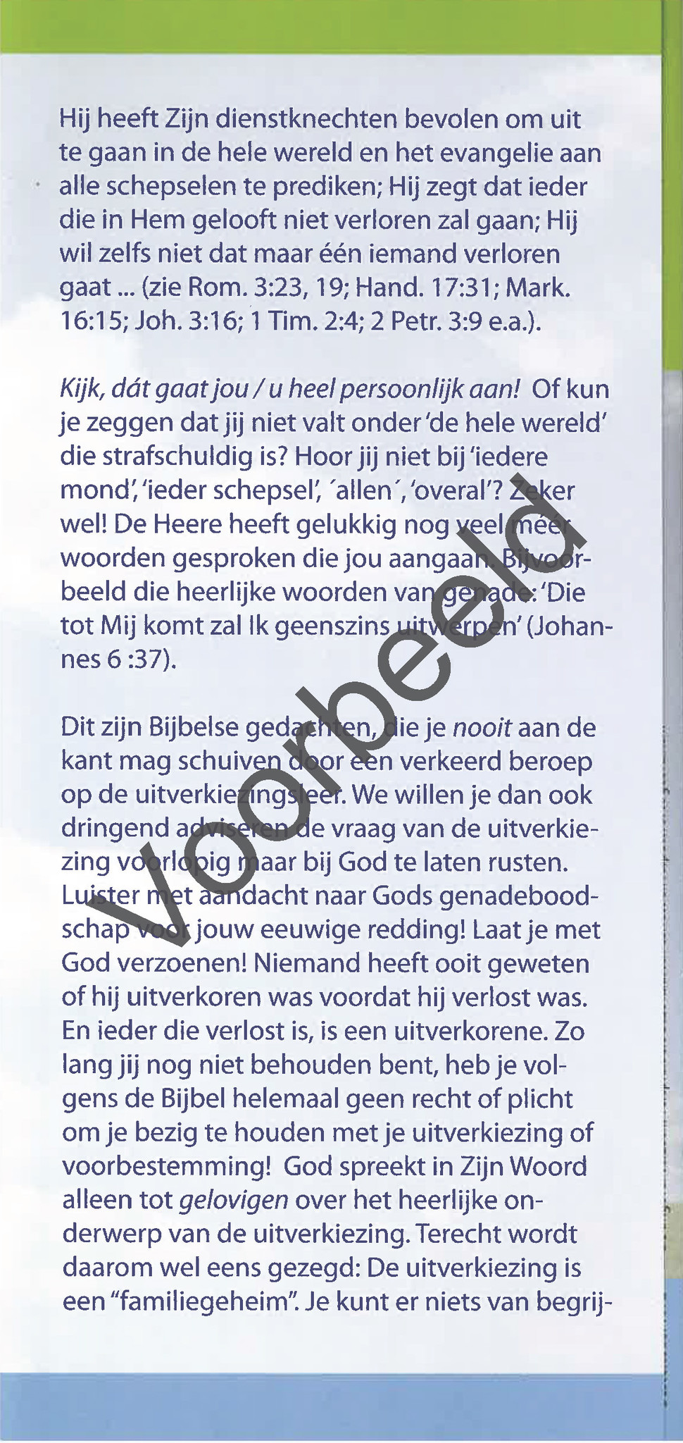 Een goed uitgevoerde folder die geschikt is voor iedereen die worstelt met de vraag van zijn of haar uitverkiezing en voorbestemming.